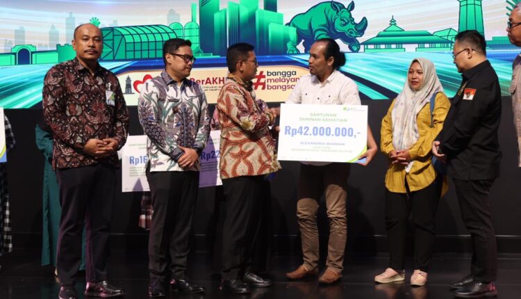 TANGERANG – Gubernur Banten Andra Soni menyerahkan santunan jaminan kematian sebesar Rp 42 juta dari BPJS Ketenagakerjaan kepada keluarga mendiang Alexandria Warman, atlet tinju Pusat Pendidikan dan Latihan Olahraga Pelajar (PPLP) Provinsi Banten yang meninggal dunia di asrama.