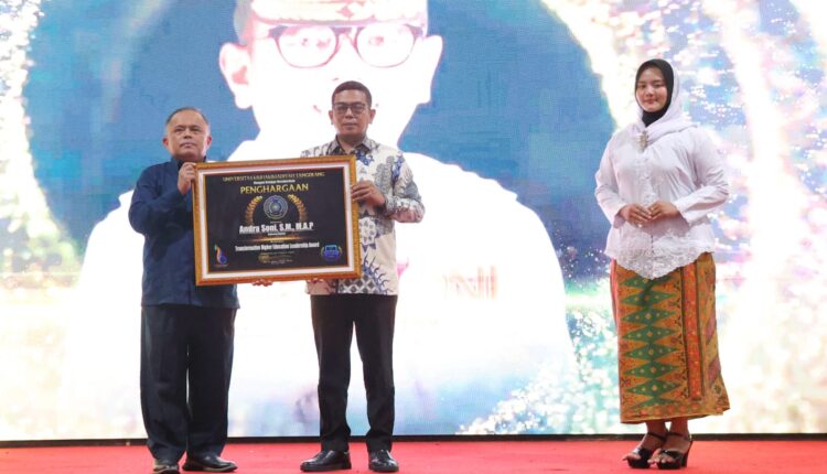Dalam kesempatan itu, Andra Soni juga meraih Penghargaan UMT Award kategori Transformation Higher Education Leadership Award.