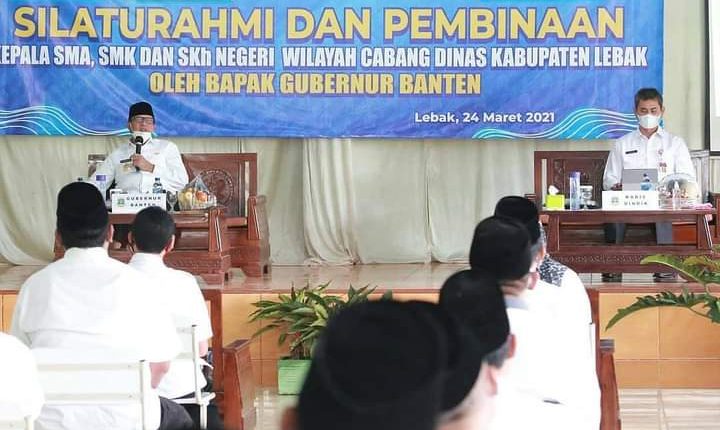 “Saya tadi melakukan simulasi dan evaluasi terkait kesiapan sekolah tatap muka. Evaluasi dilakukan oleh Dinas Pendidikan dan Kebudayaan Provinsi Banten dan mendapat dukungan dari para kepala sekolah,” ungkap Gubernur kepada wartawan usai Silaturrahmi dan Pembinaan Kepala SMA, SMK, SKh Negeri se-Kabupaten Lebak di SMKN 1 Rangkasbitung Jl. Dewi Sartika No. 61 Komplek Pendidikan Rangkasbitung, Kabupaten Lebak, Rabu, (24/3/2021).