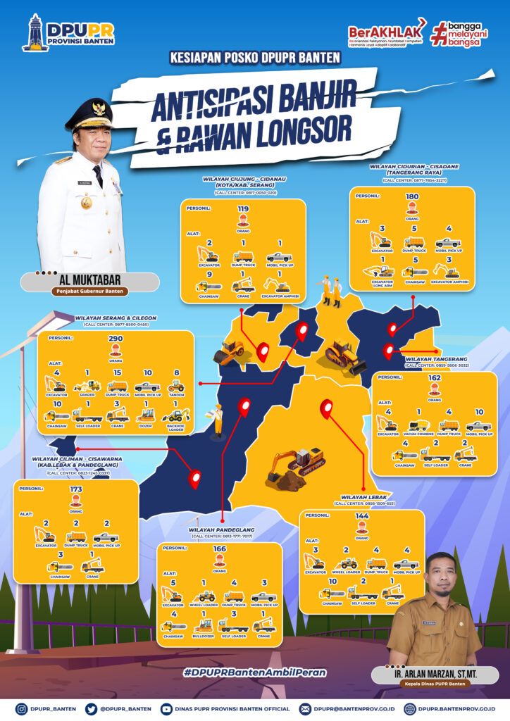 Kepala Dinas PUPR Banten Arlan Marzan mengatakan, seluruh posko tersebut disiagakan alat berat atau Disaster Relief Unit (DRU) untuk mengantisipasi adanya kejadian-kejadian kebencanaan.