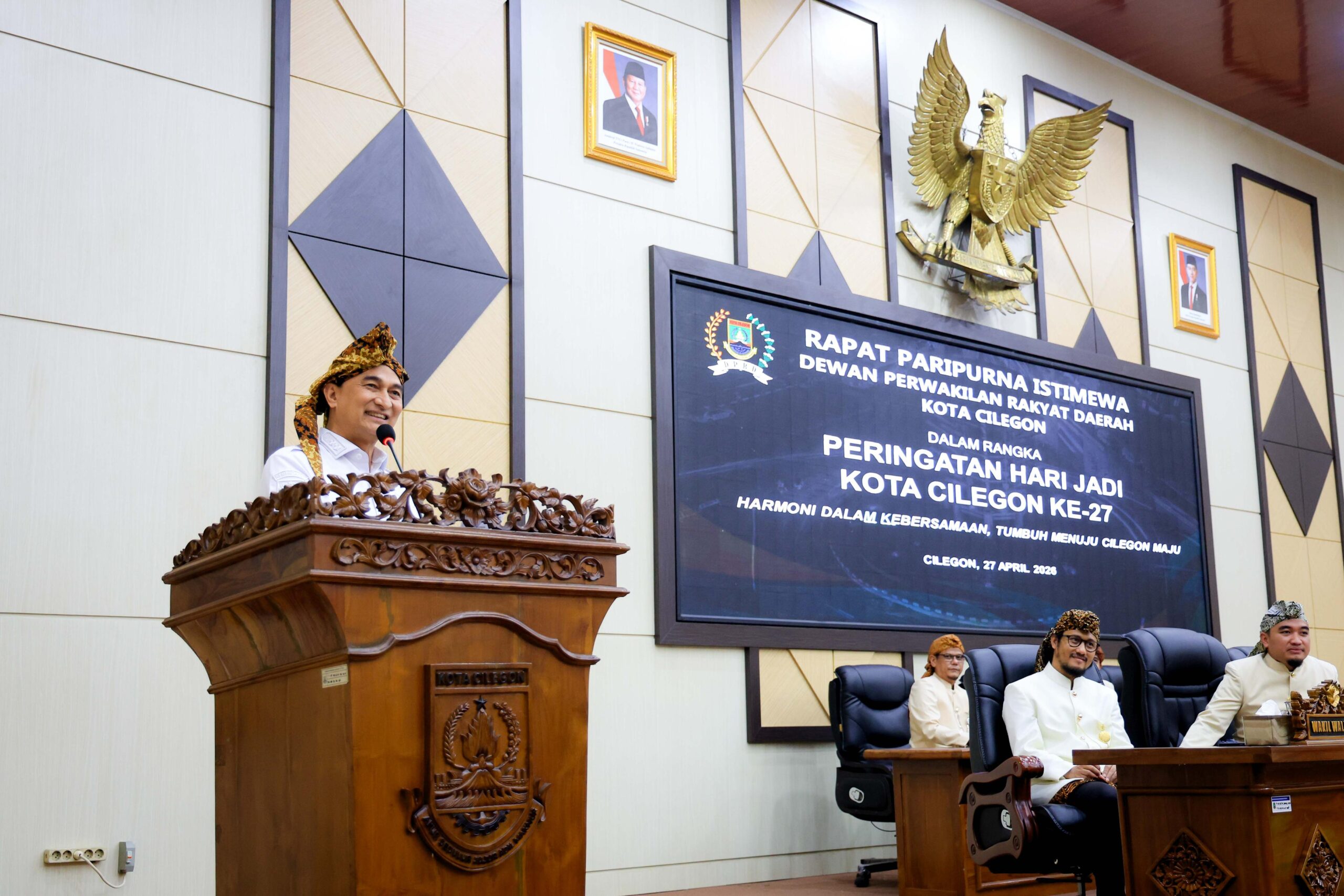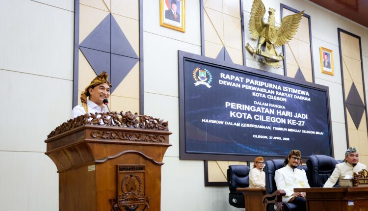 “Saya ingin kabupaten dan kota maju bersama, otomatis Provinsi Banten akan maju,” ungkap Dimyati usai Rapat Paripurna Istimewa DPRD Kota Cilegon dalam rangka Peringatan Hari Jadi Ke-27 Kota Cilegon di Gedung DPRD Kota Cilegon Jl. Jenderal Sudirman, Ramanuju, Kota Cilegon, Senin (27/4/2026).