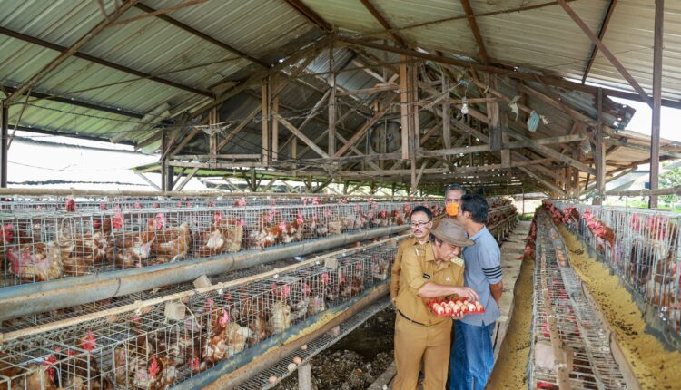SERANG – Penjabat (Pj) Gubernur Banten, Al Muktabar meninjau peternakan ayam petelur, milik PT Puri Farm di Kecamatan Curug, Kota Serang, pada Senin, (5/6/2023). Kedatangannya untuk memastikan penyebab fluktuasi harga telur di tingkat peternak.