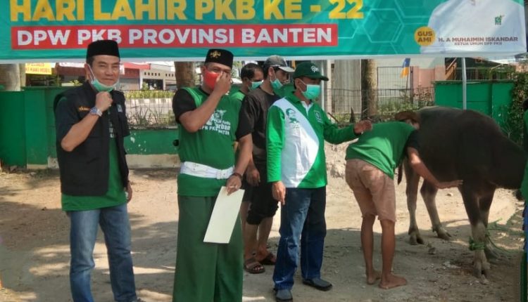 Ketua DPW PKB Banten, Ahmad Fauzi memimpin pemotongan hewan kurban. Menurutnya, target pembagian hewan kurban adalah warga masyarakat disekitar kantor DPW PKB Banten yang terdampak Covid-19.