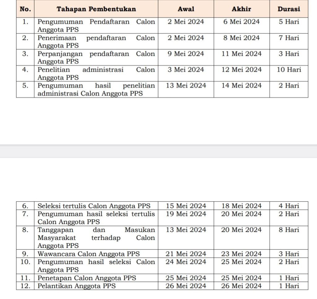 Berikut Tahapan dan Jadwal Seleksi Terbuka PPK dan PPS pada Pilkada Serentak tahun 2024.