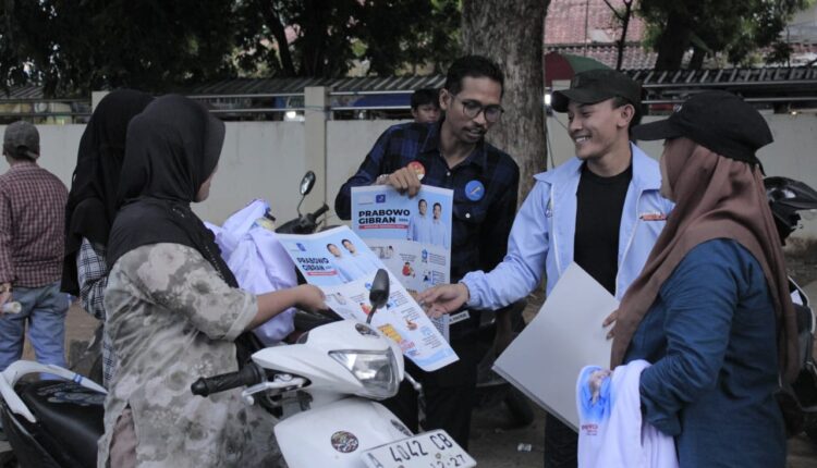 Tak hanya membagi-bagi susu, mereka juga membagikan kaos bergambar Prabowo-Gibran dan flyer berisi program unggulan yang diusung Paslon Presiden dan Wakil Presiden nomor urut 2 tersebut.
