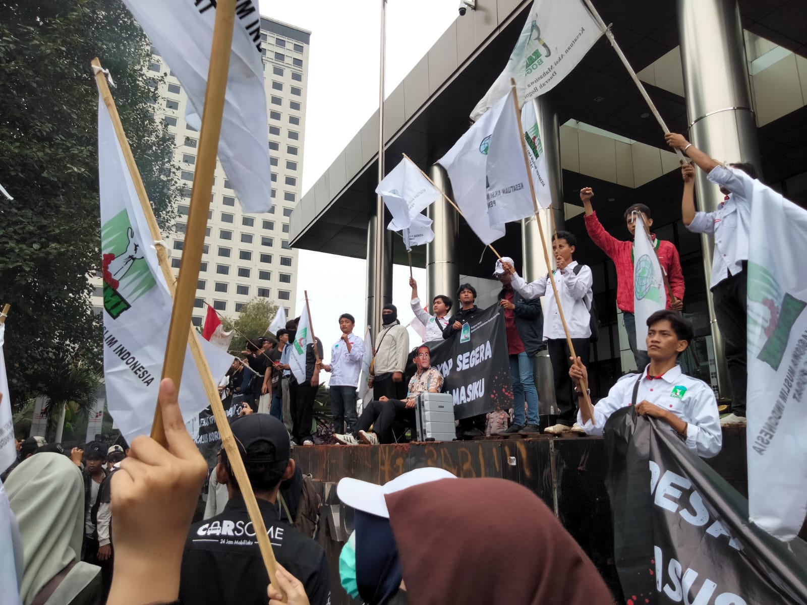 JAKARTA – KAMMI Wilayah Banten bersama Pengurus Pusat Kesatuan Aksi Mahasiswa Muslim Indonesia (PP KAMMI) menggelar aksi di depan gedung KPK, Senin (23/12/2024).