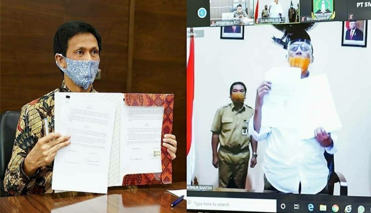 SERANG – Pemerintah Provinsi Banten melakukan Kerjasama Pembiayaan Daerah untuk Penanganan Covid-19 dan Pemulihan Ekonomi di Provinsi Banten. Kerjasama ini sebagai salah satu upaya Pemprov Banten mencapai target RKPD Perubahan 2020. Penandatanganan dilakukan oleh Gubernur Banten Wahidin Halim (WH) dan Direktur Utama PT Sarana Multi Infrastruktur Persero Edwin Syahruzad.