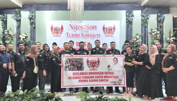 SERANG– Percaya bisa merangkul para pedagang UMKM, Keluarga Pedagang Baso Nusantara (KPBN) Korwil Banten mendukung Calon Gubernur dan Wakil Gubernur Banten nomor urut 2, Andra Soni-Dimyati Natakusumah. Deklarasi dukungan dilakukan di Kragilan, Kabupaten Serang, Senin 30 September 2024.