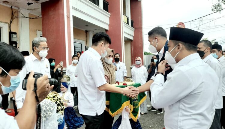 Pantauan Fakta Banten, kedatangan Amal Jayabaya di Kantor Kadin Provinsi Banten, Kota Serang, pada Jumat (12/11/2021) disambut meriah oleh tarian rampak bedug.