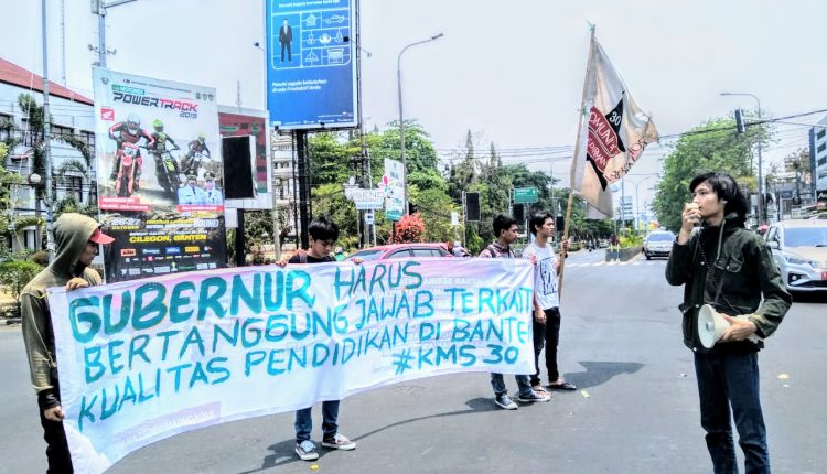tentu sudah melewati riwayat perjalanan yang beragam. Namun, Provinsi Banten masih saja dililit banyak masalah. Jika persoalan-persoalan pendidikan tidak ditangani serius, dikhawatirkan persoalan itu nantinya akan sukar diatasi,” ungkap Koordinasi lapangan aksi Farid rizki.