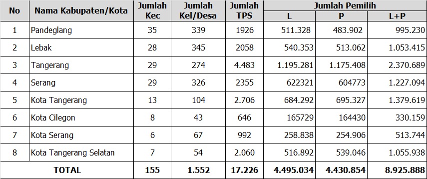“Jumlah pemilih 8.925.888,” kata Ketua KPU Banten Mohamad Ihsan.