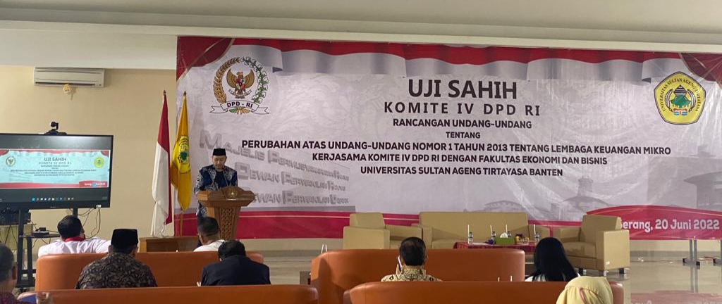 Rombongan Komite IV DPD RI dipimpin oleh Sukiryanto, yang disambut oleh Rektor Untirta Fatah Sulaiman, di Gedung Auditorium FEB Untirta, Jl. Raya Palka Km. 03 Sindangsari, Pabuaran Kabupaten Serang, Banten.