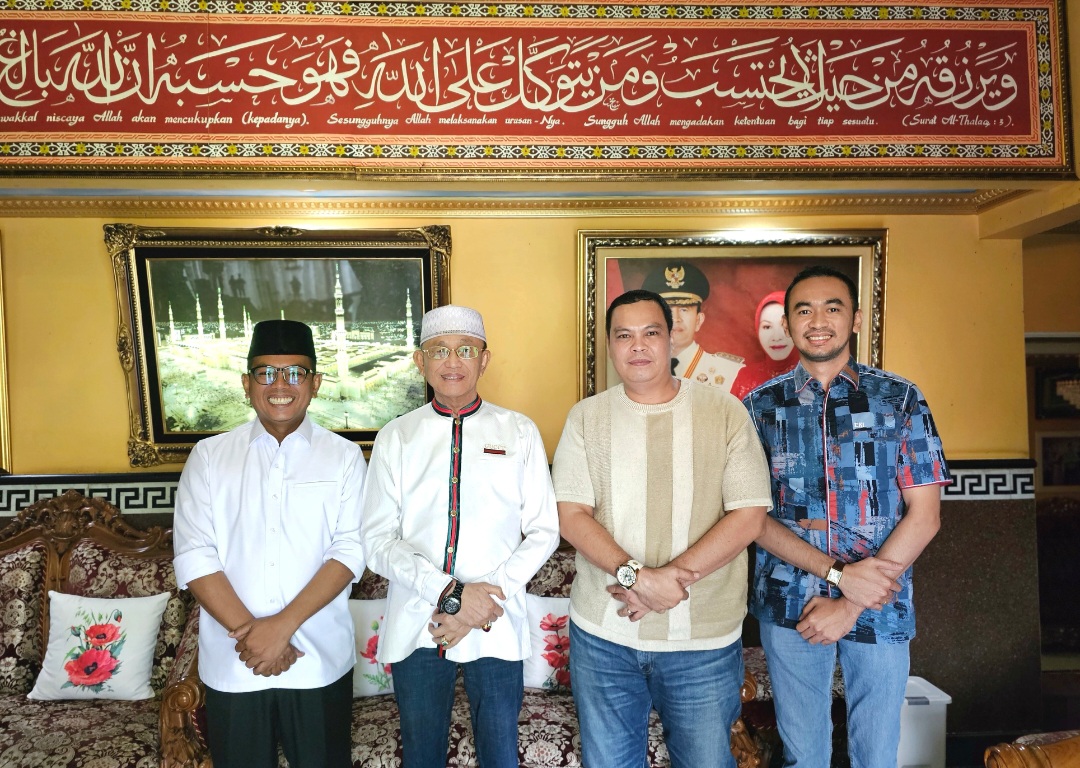 SERANG – Bakal calon Gubernur Banten Andra Soni silaturahmi ke kediaman mantan Bupati Serang Ahmad Taufik Nuriman (ATN), di Kota Serang, pada Selasa, (17/9/2024). Andra didampingi bakal calon Walikota Serang Budi Rustandi.