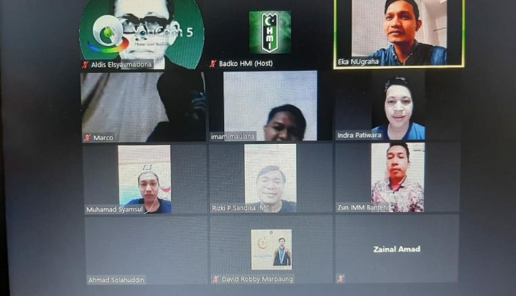 SERANG – Sejumlah mahasiswa yang tergabung dalam Aktivis Mahasiswa Se-Banten menggelar Focus Group Discussion (FGD) online yang bertema “Tantangan Milenial Membumikan Pancasila di Banten”, Minggu (26/7/2020).