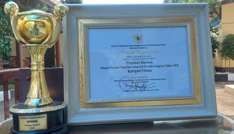 SERANG – Pemerintah Provinsi Banten meraih Penghargaan Anugerah Parahita Ekapraya Kategori Utama Tahun 2020. Piala dan Sertifikat penghargaan ini diberikan oleh Kementerian Pemberdayaan Perempuan dan Perlindungan Anak (Kemen PPPA) di Jakarta, Kamis (23/9/2020).