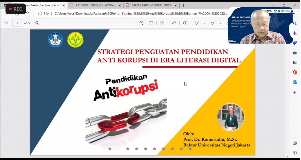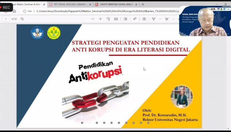 Sementara menurut Rektor Universitas Negeri Jakarta Komarudin, menanamkan budaya anti korupsi di ruang digital dapat dimulai dengan bersikap jujur, disiplin, percaya diri, mandiri berani dan adil.