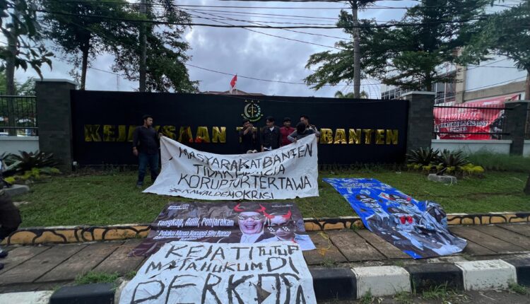 SERANG – Kawal Demokrasi mengadakan aksi di Kejaksaan Tinggi (Kejati) Banten sebagai respons terhadap maraknya kasus korupsi di Provinsi Banten yang merugikan masyarakat dan negara, Selasa (10/12/2024).
