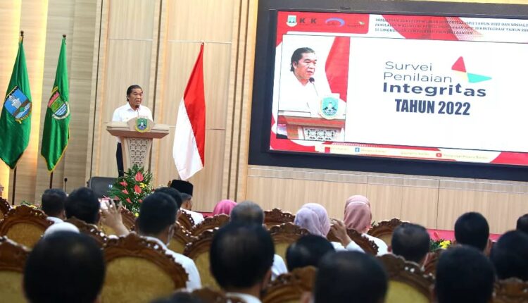 “Saya selaku Penjabat Gubernur Banten, mengajak kepada seluruh Aparatur Sipil Negara di lingkungan Pemprov Banten dan masyarakat Banten agar turut serta menyukseskan pelaksanaan Survei Penilaian Integritas Tahun 2022 oleh KPK,” ucap Al Muktabar usai mengikuti Peringatan Hari Nasional Tahun 2022 Tingkat Provinsi Banten di Pendopo Gubernur Banten, KP3B Curug, Kota Serang, Sabtu (13/8/2022).