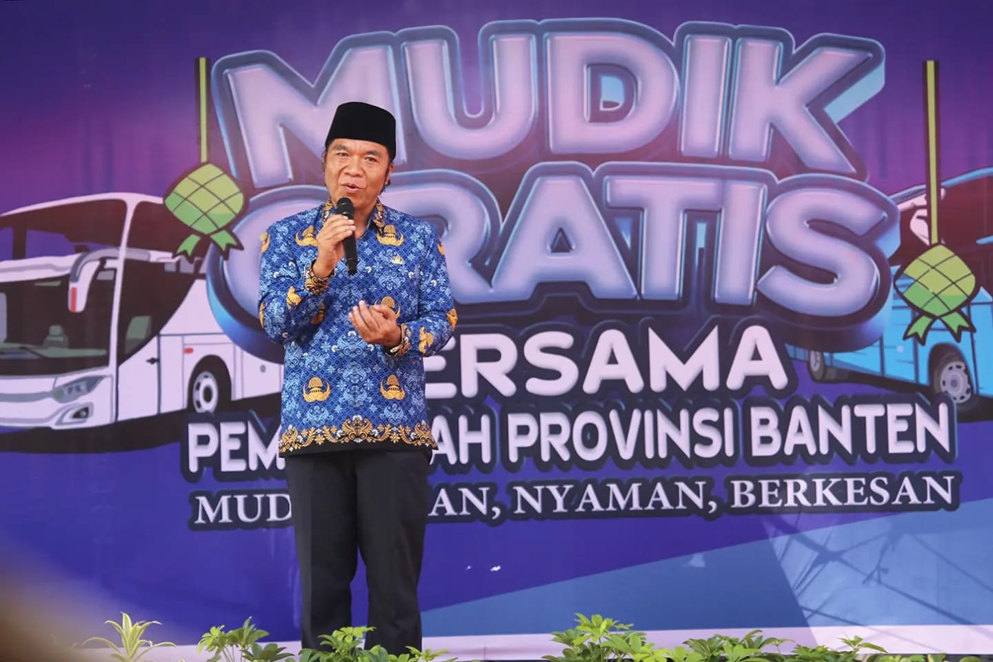 SERANG – Penjabat (Pj) Gubernur Banten Al Muktabar melepas ratusan peserta mudik gratis yang dilaksanakan Pemerintah Provinsi Banten. Pelepasan dilakukan di depan Lapangan Pancaniti, KP3B Curug, Kota Serang, pada Senin, (17/4/2023) kemarin.