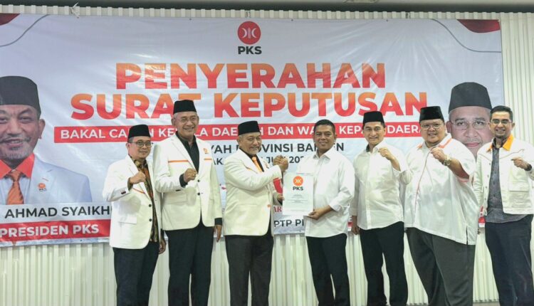 JAKARTA – Presiden Partai Keadilan Sejahtera (PKS), H. Achmad Syaikhu secara resmi menyerahkan Surat Keputusan (SK) kepada bakal calon kepala daerah (Cakada) dan calon wakil kepala daerah (Cawakada) di Provinsi Banten.