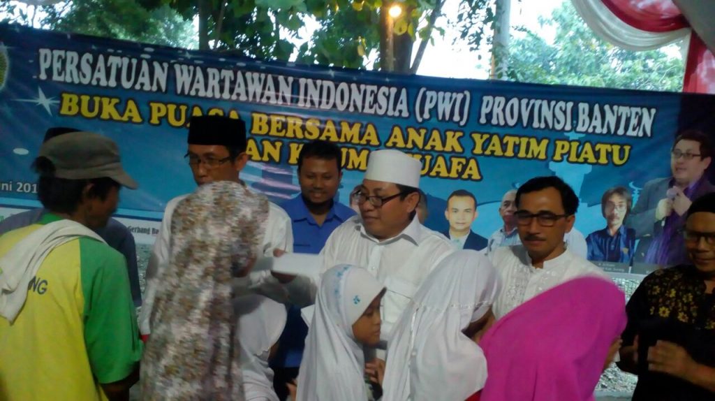 Selain buka bersama, PWI Banten juga membagikan santunan bagi anak yatim piatu dan duafa.