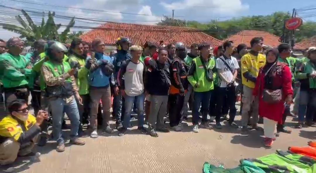 Ratusan Driver Ojol Gelar Aksi Solidaritas di Depan Mapolda Banten