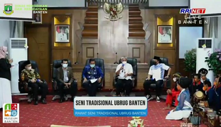 SERANG – Dalam rangka merawat keluhuran tradisi Ubrug, RRI Jakarta dan Banten bersama Dinas Pendidikan dan Kebudayaan (Dindikbud) Provinsi Banten menggelar Pagelaran Seni Ubrug di Museum Negeri Provinsi Banten, Kota Serang, Jumat (18/6/2021). Pagelaran seni ini digelar melalui luring dan daring.