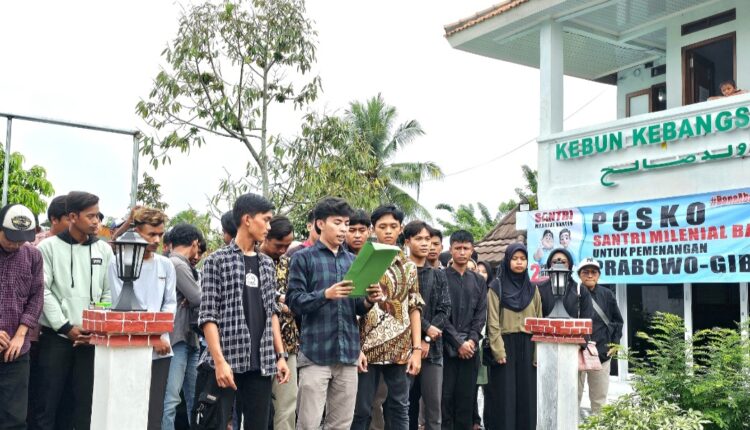 Mereka menyatakan dukungan kepada Prabowo-Gibran di Posko Relawan Santri Milenial Banten, Kebun Kebangsaan, Walantaka, Kota Serang, Rabu, (31/1/2024).