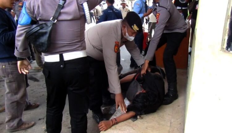 SERANG – Dua mahasiswa UIN SMH Banten mengalami luka saat menyampaikan aspirasi saat Sidang Paripurna DPRD HUT Provinsi Banten ke-23, Rabu (4/10/2023).