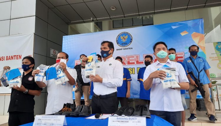 “Modus para tersangka dalam membawa narkoba ini mereka menyembunyikan didalam sepatu. Masing-masing orang membawa empat kemasan yang dibungkus plastik bening,” ungkapnya kepada awak media, Kamis (10/9/2020) siang, di kantor BNN Provinsi Banten, Kota Serang.