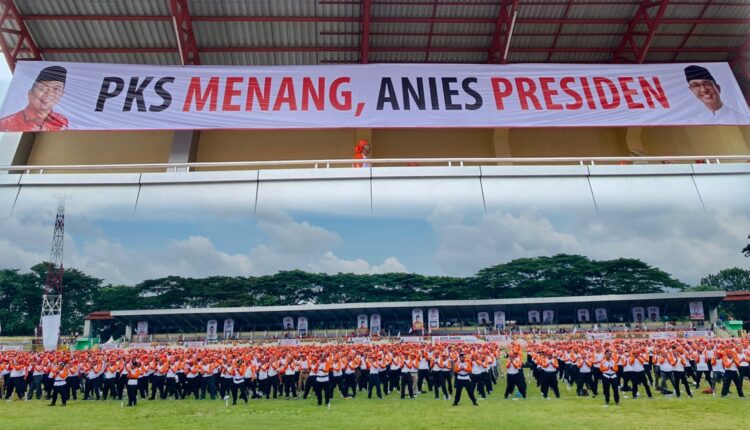 Pantauan di lapangan, Ribuan massa terdiri dari kader dan simpatisan PKS memadati stadion tersebut. Mereka menyambut kedatangan Bacalon Presiden 2024, Anies Baswedan.