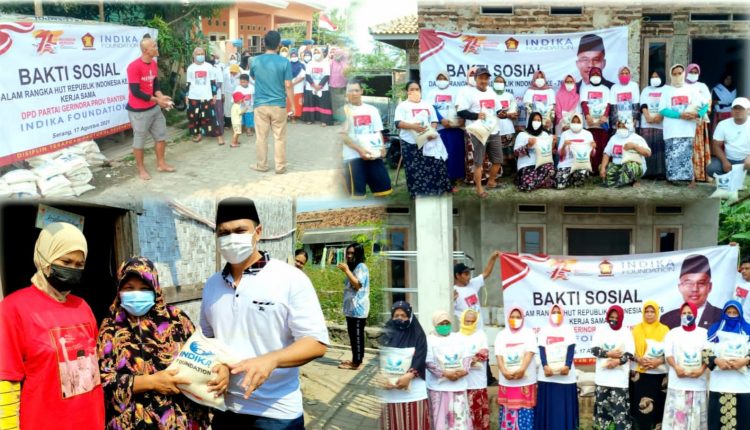 SERANG – Dalam rangka hari ulang tahun (HUT) Republik Indonesia (RI) ke-76, DPD Partai Gerindra Provinsi Banten yang bekerjasama dengan Yayasan Indika Foundation melakukan giat sosial di Kota Serang, Selasa (17/8/2021).