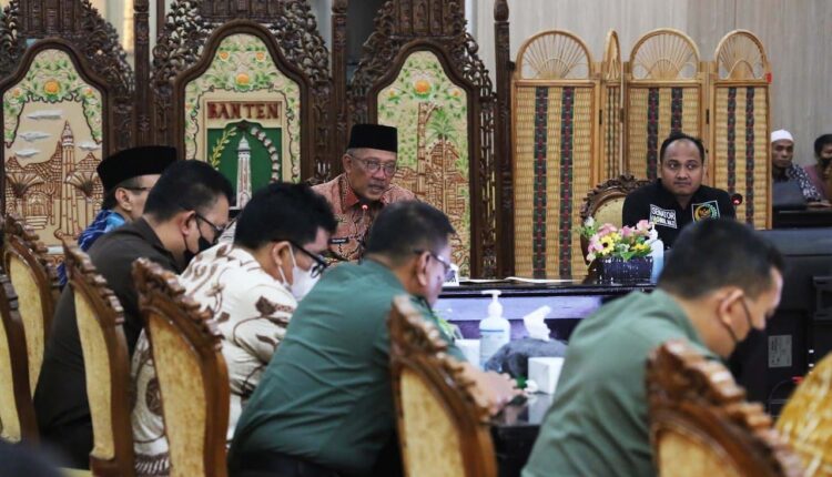 SERANG – Penjabat (Pj) Sekretaris Daerah Provinsi Banten, Tranggono bersama jajaran Forkopimda menerima Kunjungan Ketua dan Anggota Komite I Dewan Perwakilan Daerah (DPD) Republik Indonesia (RI) di Pendopo Gubernur Banten, KP3B, Kecamatan Curug, Kota Serang, pada Kamis (7/7/2022).