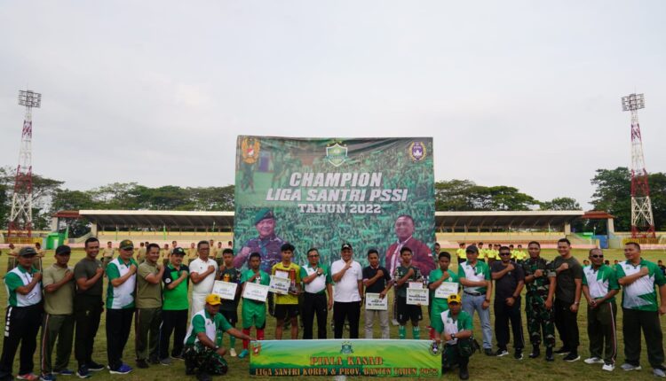 SERANG – Danrem 064/MY Brigjen TNI Yunianto tutup Liga Santri PSSI Piala Kasad tahun 2022 di Stadion Maulana Yusuf, Kota Serang, Sabtu, (13/08/2022).