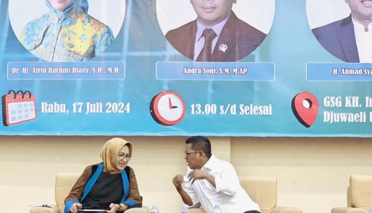 PANDEGLANG – Universitas Mathla’ul Anwar (UNMA) berhasil mempertemukan dua bakal calon Gubernur Banten, yakni Ketua DPD Partai Gerindra Provinsi Banten Andra Soni dan Ketua Pimpinan Pusat Kesatuan Perempuan Partai Golkar (KPPG) Airin Rachmi Diany.