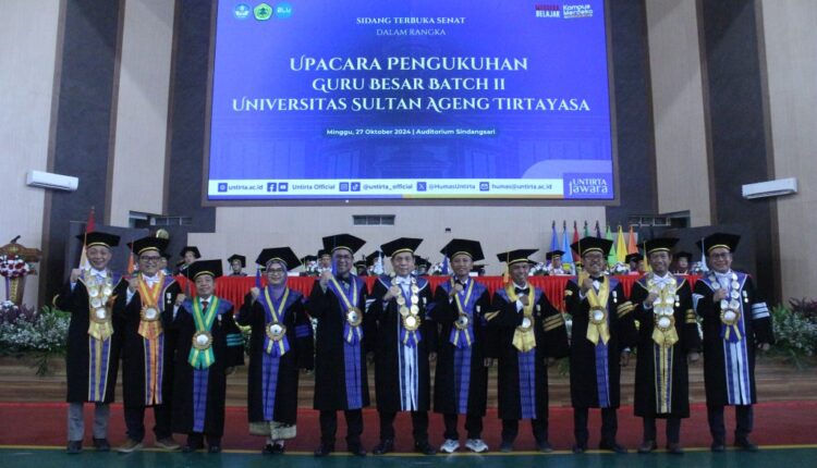SERANG – Universitas Sultan Ageng Tirtayasa (Untirta) berhasil menambah deretan guru besarnya dalam sidang terbuka senat dengan penuh khidmat dan dilaksanakan di Auditorium Kampus Untirta, Sindangsari, Kecamatan Pabuaran, Kabupaten Serang, Minggu, (27/10/2024).