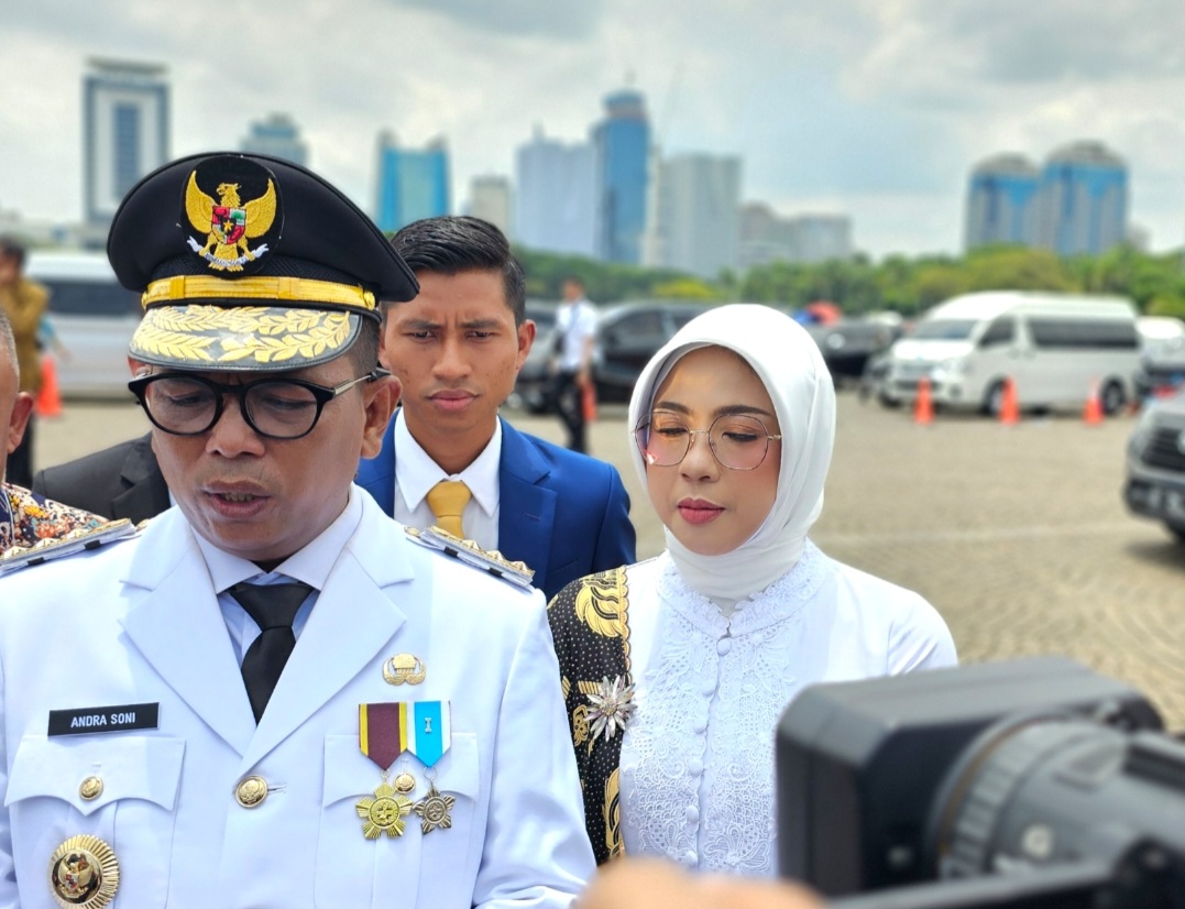 Sementara itu, Gubernur Banten Andra Soni menyampaikan syukur Alhamdulillah hari ini telah dilantik oleh Presiden Prabowo.