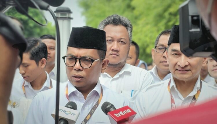 SERANG – Gubernur Banten terpilih, Andra Soni memberikan pernyataan penuh semangat setelah tiba di Komisi Pemilihan Umum (KPU) Provinsi Banten untuk menghadiri Pleno Penetapan Pemenang Pilkada Banten pada Kamis, 9 Januari 2024.