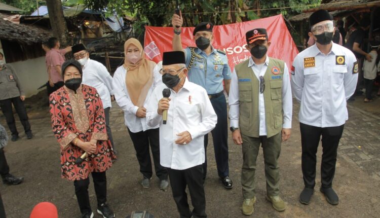 PANDEGLANG – Wakil Gubernur Banten Andika Hazrumy mendampingi Wakil Presiden RI Ma’ruf Amin meninjau korban gempa di Kampung Cibeulah, Desa Munjul, Kecamatan Munjul, Kabupaten Pandeglang, Kamis (20/1/2022).