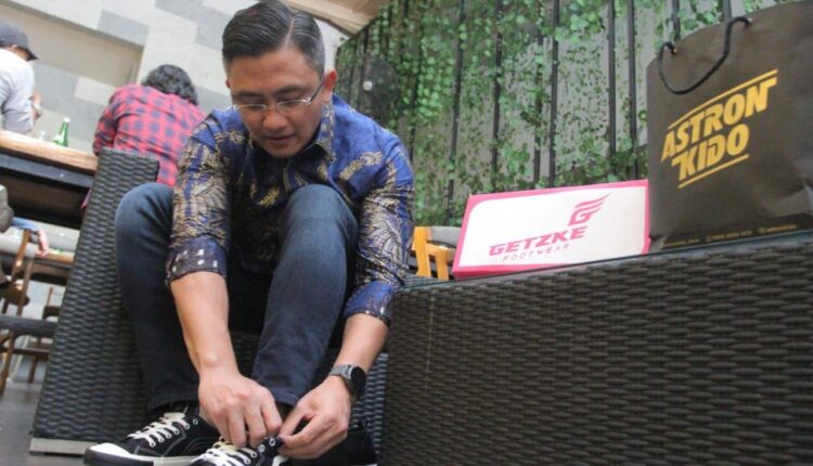 “Sepatu yang saya kenakan ini, Getzke. Ini adalah brand lokal Banten, buatan pelaku ekonomi kreatif di Kota Serang, Ibukota Provinsi Banten,” kata Andika dari atas podium seraya menunjuk ke kedua kakinya yang mengenakan sepatu bermerek Getzke.