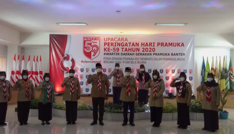 SERANG – Puncak peringatan Hari Pramuka ke-59 tingkat Provinsi dihadiri Wakil Gubernur Banten, Andika Hazrumi. Tahun 2020 ini, peringatan mengambil tema, “Peran Gerakan Pramuka Ikut Membantu Dalam Penanggulangan Bencana Covid-19 dan Bela Negara”.