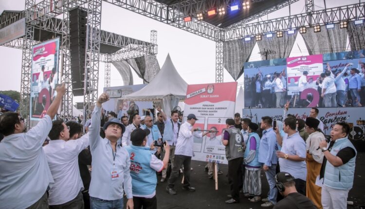 TANGERANG – Pasangan calon Gubernur dan Wakil Gubernur Banten nomor urut 02, Andra Soni-Dimyati Natakusumah sukses menggelar Kampanye Akbar dan Konser Banten Maju di Lapangan Desa Surya Bahari, Kecamatan Pakuhaji, Kabupaten Tangerang, pada Jumat, (22/11/2024).