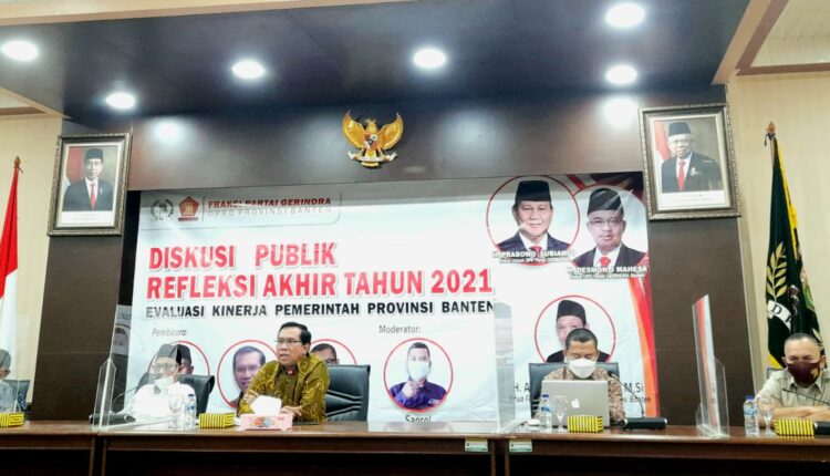Demikian terungkap saat Fraksi Gerindra menggelar diskusi publik refleksi akhir tahun 2021, di Gedung Serba Guna DPRD Provinsi Banten, Kota Serang, pada Kamis, 30 Desember 2021.