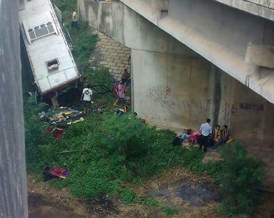Sebuah bus SM Prima dengan nomor polisi A 7338 A padat penumpang terperosok ke bawah jembatan jalan tol Tangerang – Merak, yang dibawahnya menjadi terowongan perlintasan kereta api.