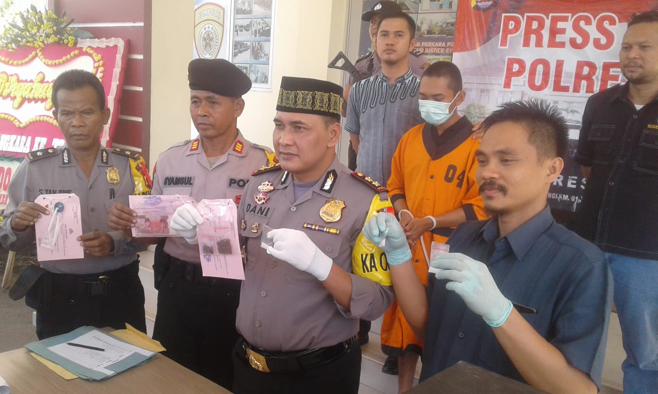 Dalam press release tersebut, Kapolres AKBP Dani Arianto yang didampingi Kasat Narkoba AKP Endang Sugiarto menjelaskan, bahwa dari tangan tersangka yang berinsial HN (23) warga Kampung Sentral Rt 002/004, Kelurahan Rangkasbitung Barat, Kecamatan Rangkasbitung, Kabupaten Lebak, petugas mendapatkan barang bukti berupa 9 plastik bening berisikan shabu dan 2 plastik bening berisikan narkotika jenis gorila.