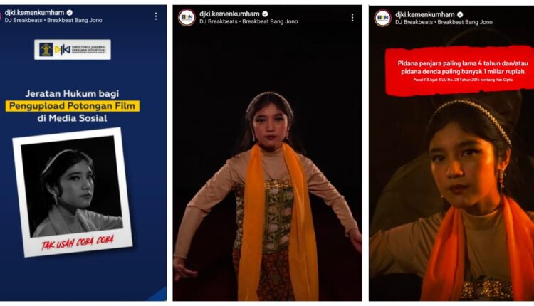 Melalui akun Instagramnya @djki.kemenkumham membuat video reels dengan penjelasan “Jeratan Hukum bagi Pengupload Potongan Film di Media Sosial”.