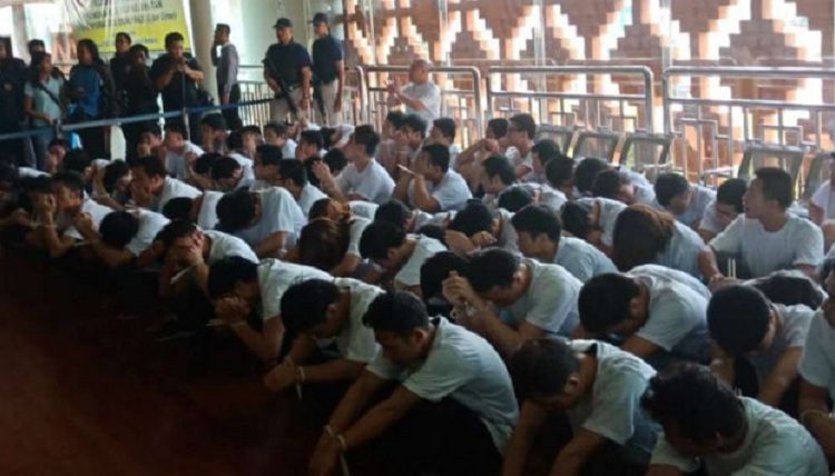 FAKTA BANTEN – Dengan memakai baju kaos warna putih, ratusan wisatawan China yang melakukan penipuan secara online diserahkan ke polisi China, pada Rabu 6 Juni 2018. Para penipu itupun langsung dideportasi oleh pihak Imigrasi Ngurah Rai.