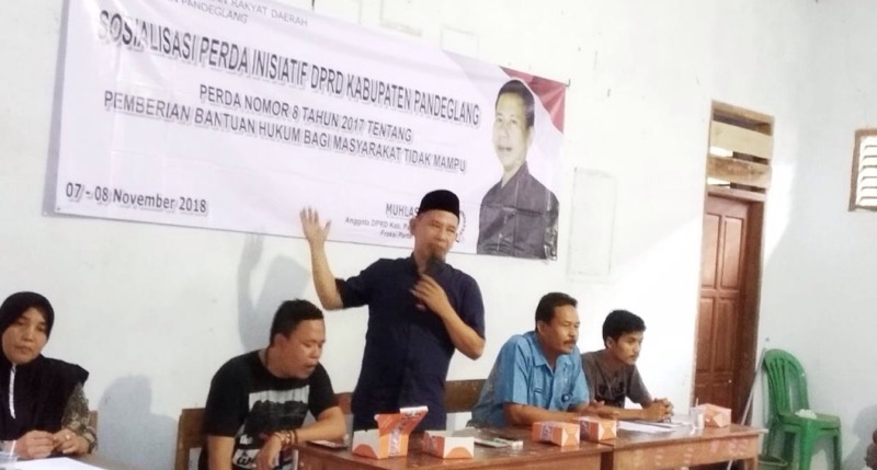 Menurut Muhlas, Perda inisiatif DPRD terkait bantuan hukum terhadap masyarakat yang kurang mampu tersebut, merupakan salah satu Perda dari sebanyak Perda inisiatif yang telah disahkan di 2017. Sekarang ini, pihaknya telah mensosialisasikan Perda tersebut kepada masyarakat khususnya di zona V, agar warga memahami tentang hukum dan tahu bagaimana caranya ketika ingin mendapatkan bantuan hukum tersebut.
