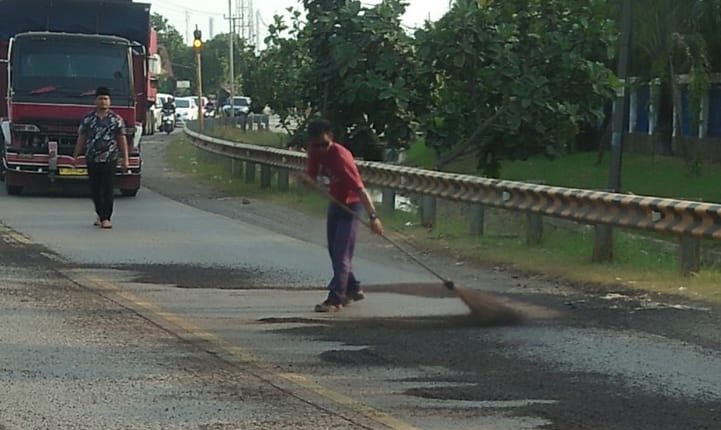 “Belum tahu material serbuk yang berhamburan di jalan tersebut. Pengguna motor mengeluh karena matanya kelilipan meski sudah pakai helm,” imbuhnya.