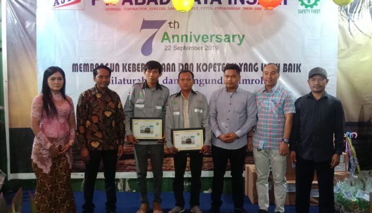 CILEGON – Menginjak hari jadi ketujuh tahun PT Abadi Jaya Insani (AJI) yang bergerak di bidang General Contractor, Supplier, Labour Supply, Civil, Perdagangan Umum dan Sipil memberikan apresiasi kepada para karyawan berprestasi berupa hadiah umroh kepada dua karyawan. Selain umroh PT AJI juga membagikan hadiah menarik kepada puluhan karyawan lainnya.
